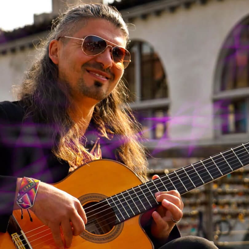 Ustvarjalec, ki glasbo razume kot živo bitje. Njegova kitara, glas in instrumenti, kot so n’goni, ney in rav vast se stapljajo v valovito pripoved, ki odpira vrata v globlje občutke.
