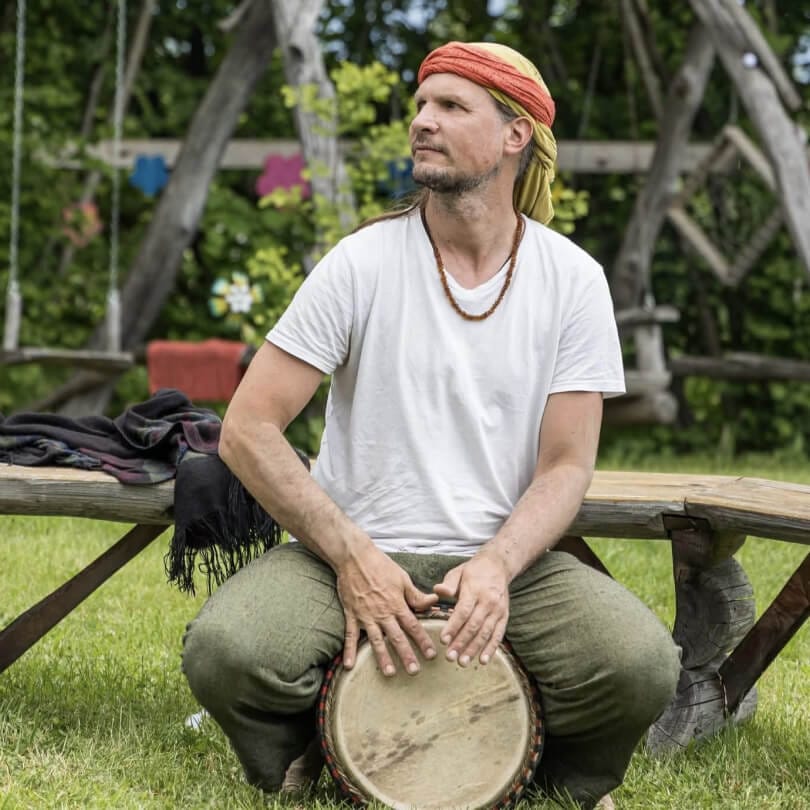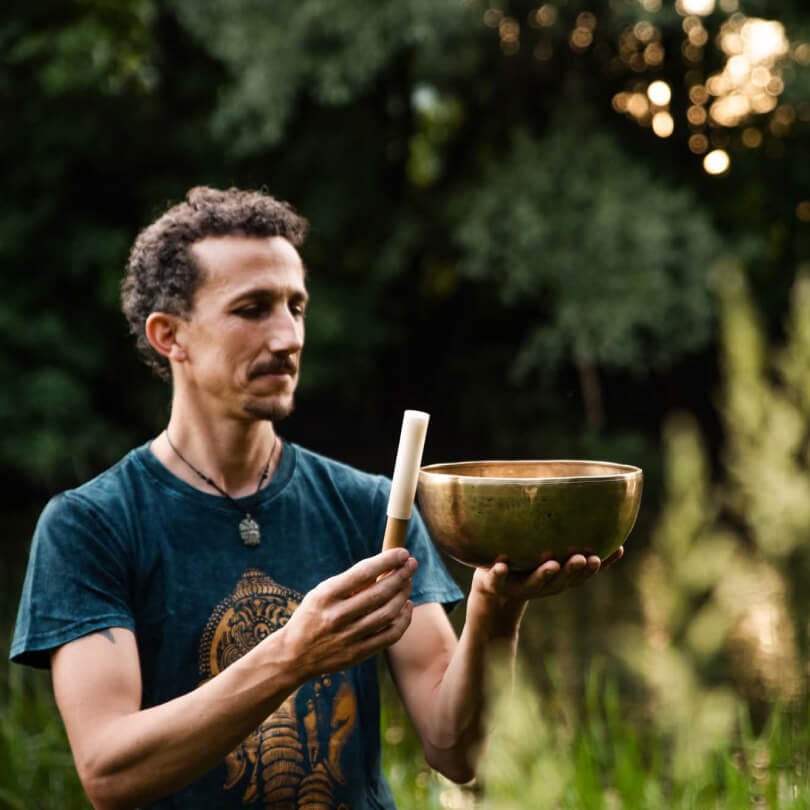 Že petnajst let se mojstri v delu s prvinskim zvokom, glasom, različnimi dihalnimi tehnikami in meditacijo. Na zvočnih kopelih, dihalnih vajah in meditacijah, ki jih izvaja, uporablja različne inštrumente, ki izvirajo s celega sveta, navdih pa največkrat išče v naravi, kjer je ogromno zvokov, ki jih lahko prenese na inštrumente in glas. Glasba, ki jo igra izvira iz trenutka, ki se mu prepušča in s tem dopušča, da je tudi sam inštrument, skozi katerega igra božansko. Nekaj glasbil, ki jih uporablja: glas, gong zemlje, gong lune, didgeridoo, kristalne in tibetanske posode, kalimba, piščal, šamanski boben, ropotulje, oceanski boben, zvončki, zvočne vilice, kitara, hang drum in še kaj se najde.